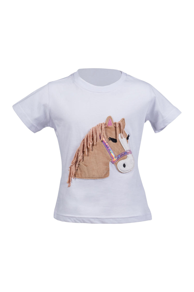 A fluffy horse head motif on the front adds a charming detail that children will adore. With its simple yet stylish design, the shirt pairs easily with breeches, jeans, or casual outfits, making it versatile for both stable activities and daily life. Durable and comfortable, it’s the perfect choice for active kids who love horses.