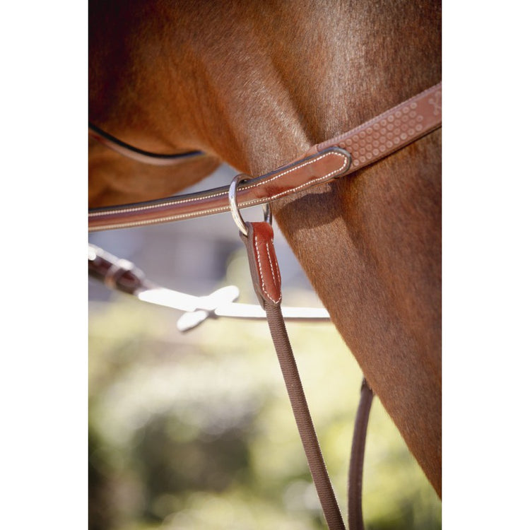 Penelope Collection US Martingale Fork Elastic - an elastic martingale attachment that matches the Penelope leather collection products, however, the martingale attachment easily adapts to any type of breastplate. Compose of two round elastic straps connected by a leather link to ensure the stability of the martingale. Thanks to the elastic, it is flexible and allows more movement for your horse.