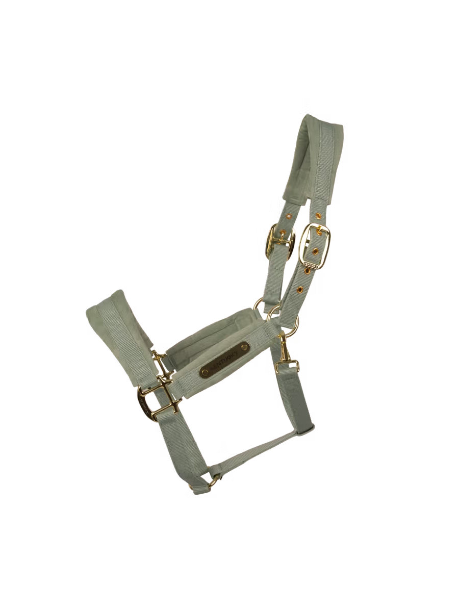 The Kentucky Velvet Halter closes with a high-quality gold brass carabiner hook and is adjustable on both sides of the crownpiece, allowing for a precise and comfortable fit. Easy to maintain and stylish in appearance, it is a practical yet elegant choice for everyday use.