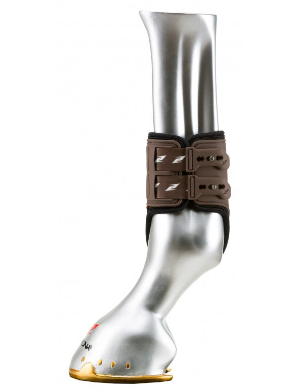 Zandona Carbon Air Balance Fetlock Boots - The 100% made in Italy "CARBON AIR BALANCE Fetlock" have been studied to defend jumping horses from collisions and bruises at hind-limb's fetlock and part of the cannon, while offering tendon support. They are composed by external TPU structure with differentiated thickness, transpiring thanks to the perforated Neoprene and ventilated by 3 Air-Vents. Gel-Tech is included between the external TPU structure and the Neoprene support, where necessary, working as shock absorber and comfortable padding. Carbon Fibre elements are present under the shell to thermally insulate the joints from the heat generated by external friction, while increasing the mechanical resistance to impacts. The elastic straps with quick-release-tip have been calibrated for a secure closing, they are in-fact provided of double locking system (horizontal\vertical). Its dimension and absolute ergonomic shape have been developed copying accurately the limb structure, guaranteeing a perfect positioning while avoiding any kind of stress. They are also equipped with a magnetic device that improve cellular function, increasing horses performance and dynamic balance. The permanent magnet used is composed of a highly magnetic alloy of Neodymium, Iron and Boron with Nickel coating, capable of exerting a magnetic flux density of 2600 Gauss. It was found in various tests with the help of veterinarians and professional riders, that the use of this device placed near the muscle-tendon apparatus greatly decrease the limbs fatigue as induce an increase in vascular blood-flow and lymphatic-circulation, with multiple beneficial effects. The benefits induced by increased vascular blood-flow and by the magnetic polarization, ascertainable on horses as humans, are anti-inflammatory and analgesic effects, bones and joint articulations strengthening, as well as acceleration of the process of toxins expulsion and of absorption of muscles lactic-acid. Those benefits lead the improvement of movements and jumping performance of the horse.