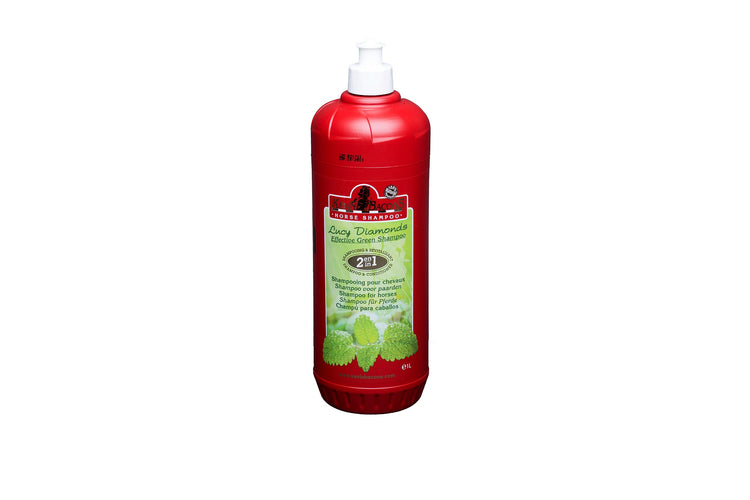 Kevin Bacon's Lucy Diamonds Green Shampoo - a PH neutral 2-in-1 shampoo & conditioner for daily use that cleans, respects and protects the horse's skin. The unique formula has a deep cleaning effect on the horse's coat, mane and tail. It will also relieve, decongest and soothe the skin after insect bites.
