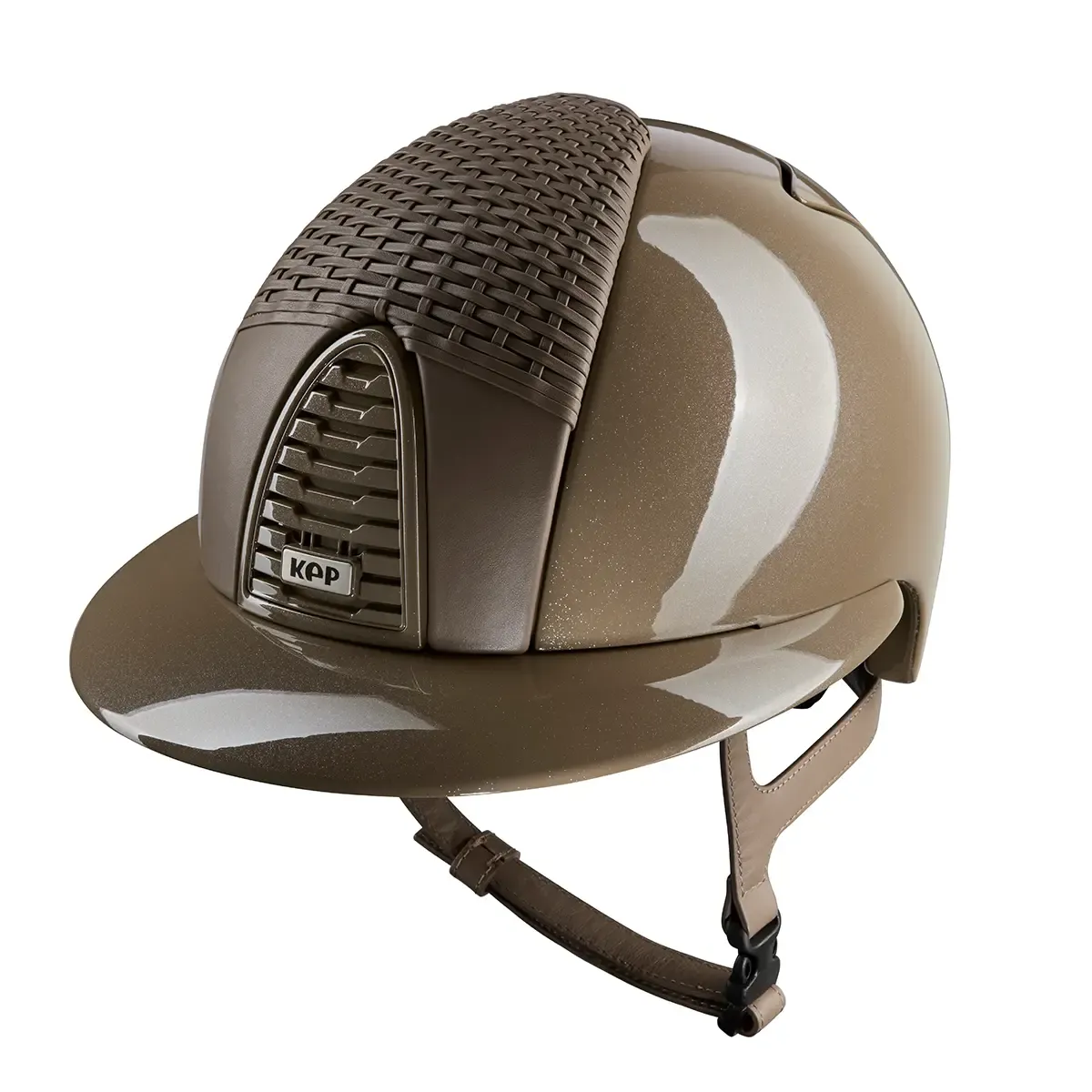 KEP Riding Helmet Cromo 2.0 Roma Diamond Taupe Polo Visor - this luxurious equestrian helmet combines exceptional style, with innovative safety technology and timeless elegance. The Roma collection stands out through its exquisite woven leather finish, created using artisanal techniques that give each helmet a distinctive character and sophisticated, luxurious appearance.