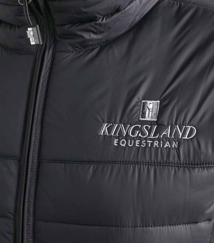 Kingsland Classic Unisex Insulated Jacket Black - due to a high level of demand, the Kingsland Classic Jacket is now available in Black. The stylish jacket features an elastic softshell panel on the sides which allows complete freedom of movement and comfort when riding and around the stable. A two-way YKK zipper and two front zipped pockets make it ideal for riding. Featuring the Kingsland logo on the chest and a larger logo on the lower back, this jacket is certain to become your favorite for cooler days with the horses.