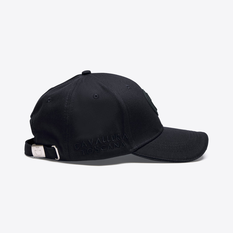 Cavalleria Toscana Silicone Patch Baseball Cap - this sporty cap features a unique round silicone CT logo patch in the center front and Cavalleria Toscana text on both sides for a great look. Lightweight and comfortable, it is fully adjustable at the back with a high quality metal buckle featuring CT logo for a perfect fit.