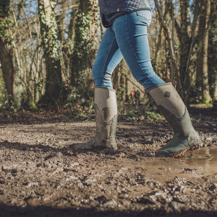 Stretch-fit topline binding snugs leg to keep warmth in and cold out