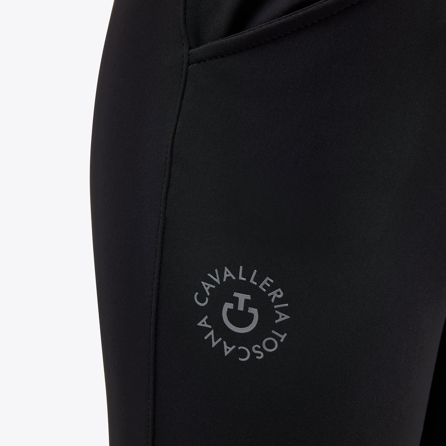Made from breathable, anti-bacterial, four-way stretch fabric, the calf features a stretch sock panel that ensures the breeches are easy to put on, yet remain comfortable under boots or chaps The contrasting colored CT orbit logo on the right side adds an essential Cavalleria Toscana touch.