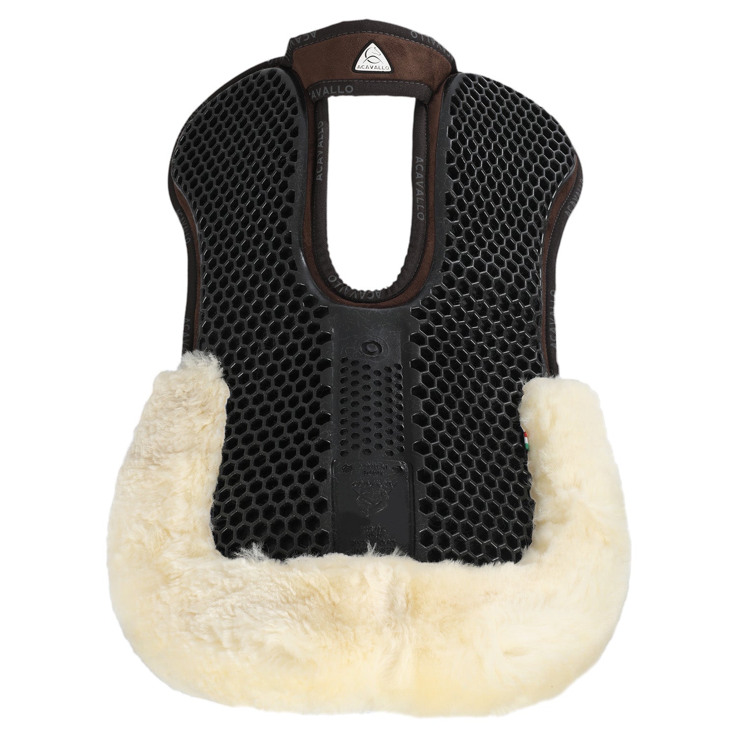 The rear edge of the pad is covered in Acavallo® sheepskin, a natural and hypoallergenic material that prevents chafing, abrasions and blisters. The combination of sheepskin and gel also gives a refined aesthetic to the item.