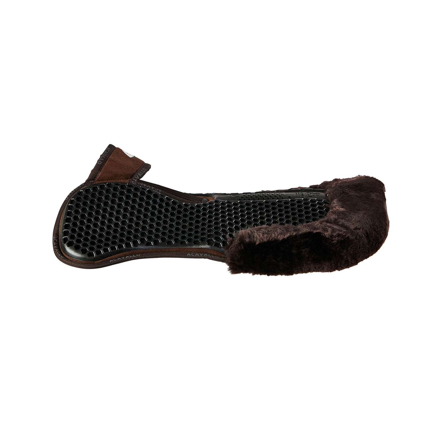 Acavallo Withers Free Hexagonal Soft Gel Pad with Memory Foam & Rear Sheepskin Edge - the perfect pad for horses with high wither! This pad doesn't compress the withers, ensuring your horse's comfort. The anti-slip, shock-absorbing and breathable Hexagonal gel further aids in your horses comfort and therefore performance. Aesthetically designed, with an anatomic shape, this pad will be the perfect partner for your saddle. It is an ideal pad for riders using custom-made saddles for their horse and for riders who want to feel the true benefit of an ultra-close contact. The saddle is cradled in luxurious sheepskin for a brilliant look. Because of its hexagonal gel structure, the air is compressed within the cells of the gel pad and expelled as the horse moves, creating a cushion under the saddle.