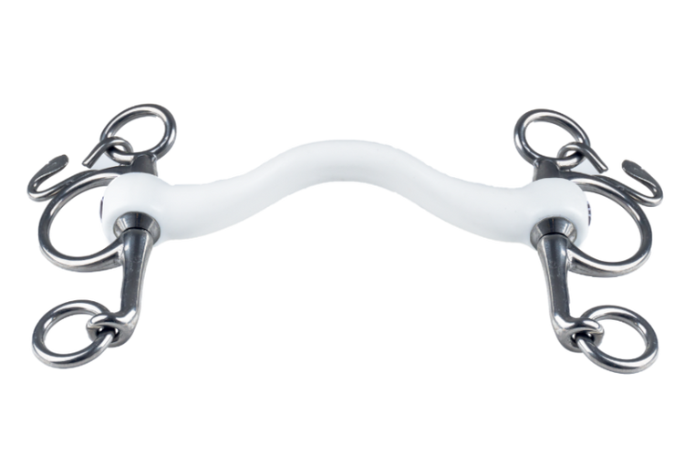 These bits act on three different points on the horse's head: via the tongue on the lower jaw, through the leverage of the cheek pieces on the neck and via the curb chain on the lower jaw. The rein aid is distributed over the various pressure points on the horse's head. This enables the rider to have better influence and control, e.g. with strong or stormy horses.