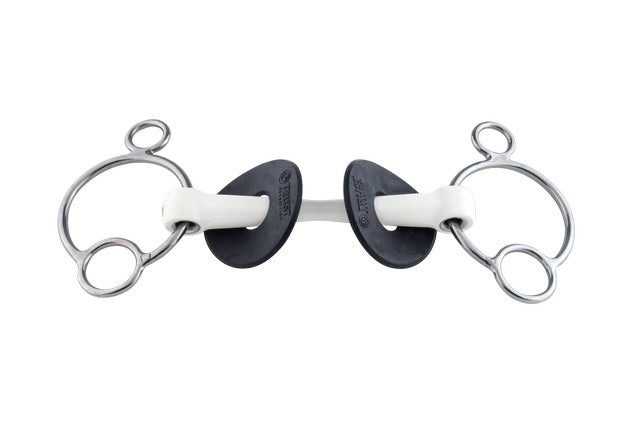 Trust Inno Sense 2.5 Ring Flexi Soft Bit Slim - A 2.5-ring cheekpiece is a milder version of a 3-ring (Pessoa) cheekpiece. This cheekpiece can be used to create a leverage effect. The lower the reins are placed, the more direct the bit becomes. Compared to the 2,5 Eggbut, the loose rings can move loosely, allowing more movement in the bit and a more indirect effect of the hand’s help. The pressure point lies on the poll, just behind the ears.