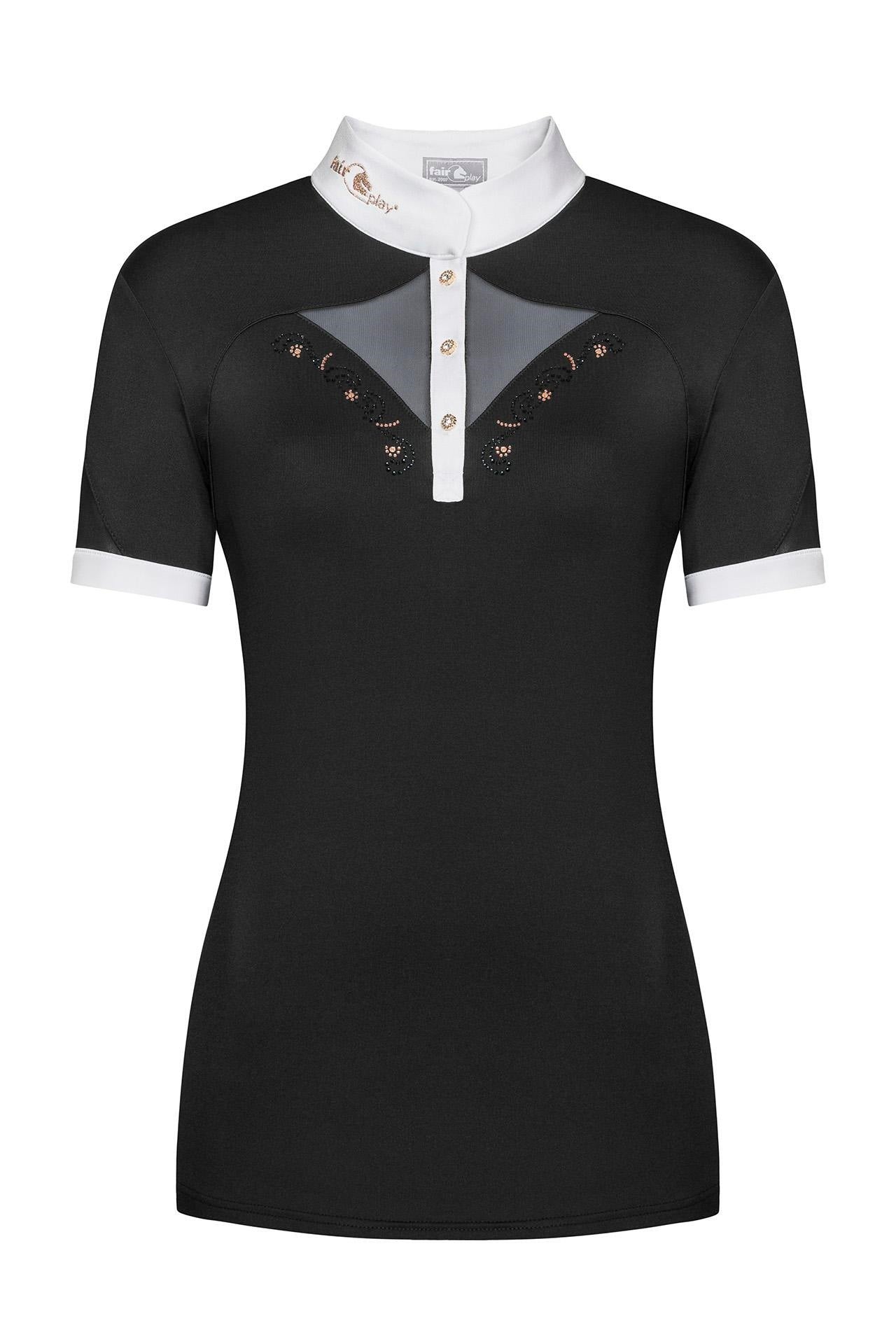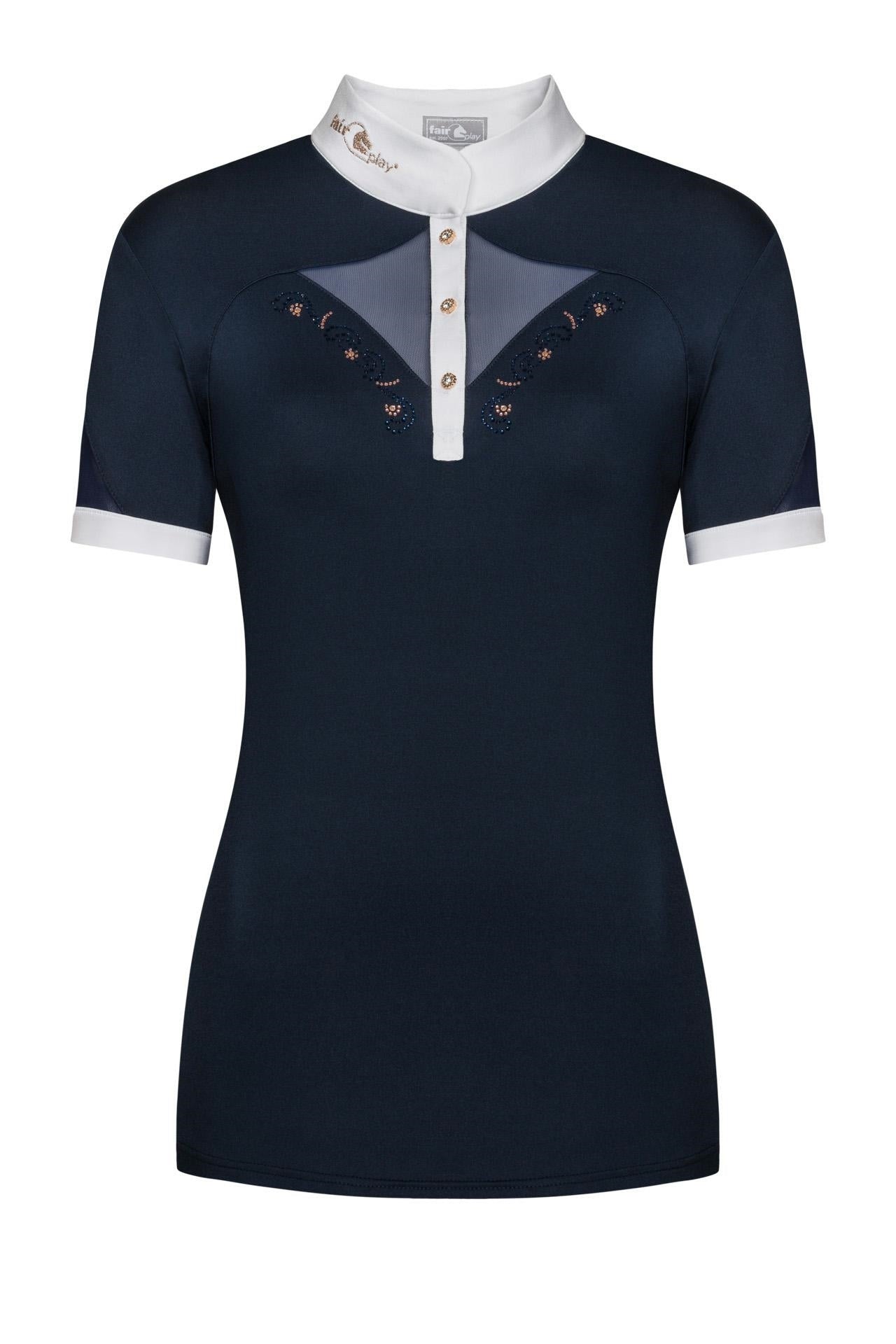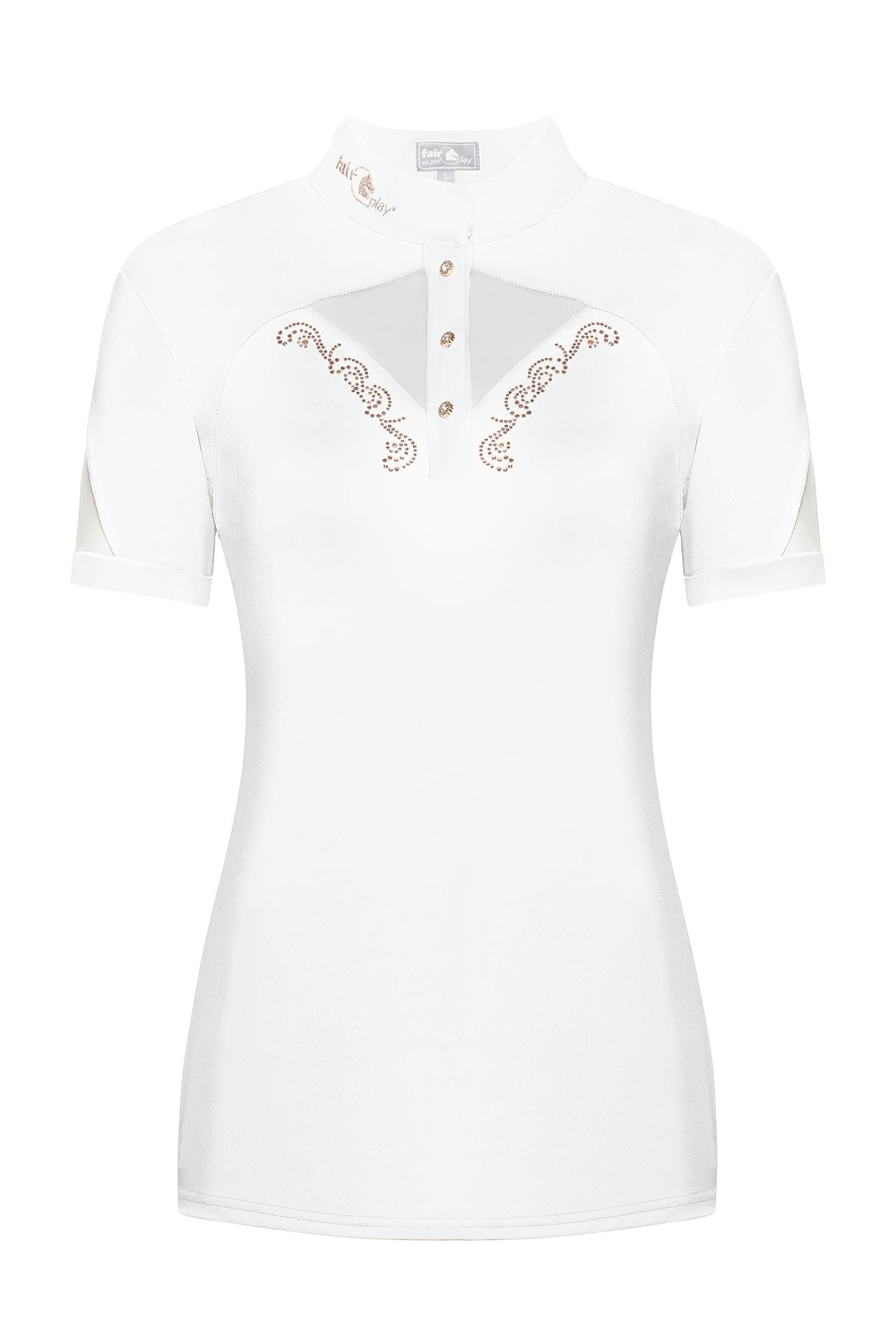 A large selection of equestrian show shirts with short sleeves for women from premium brands such as Vestrum, Cavalleria Toscana, Horse Pilot, Ego7, Kingsland, Makebe, Penelope Collection. These short sleeve competition shirts are perfect for riding in the summer. They come in all kinds of designs: classic, plain, modern, sporty, feminine, fun, dark or bright. They are all suitable for equestrian competitions of any discipline.
