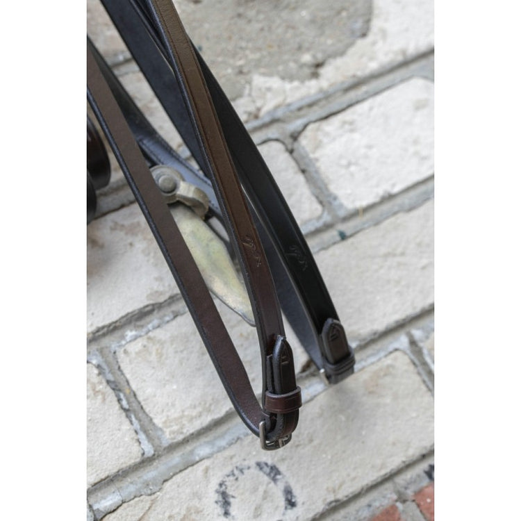 Penelope Daily Rubber Reins - Matching set of reins for the Daily Bridle, with a very souple rubber, and V shape grip. Penelope logo is printed in the top leather part. Buckles are matching the bridle's silver color.